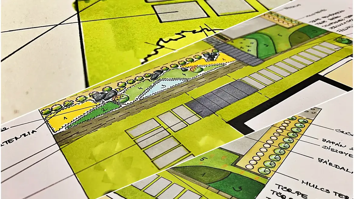 • Segít arányosan megtervezni a növényzetet, burkolatokat és tereptárgyakat.